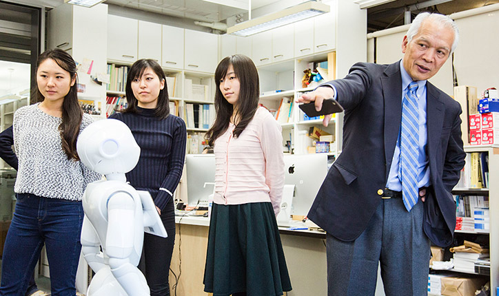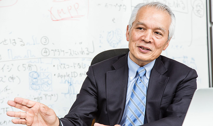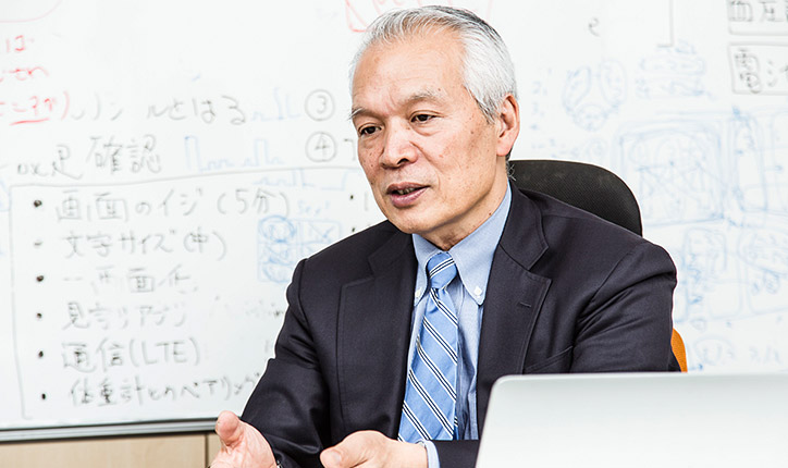 We’ve also worked within our community for the city of Fujisawa to carry out experiments for a project called Smile Wave. For this project, senior citizens use smartphones to access their pictures of smiling faces of family, friends or caretakers they know and see on an everyday basis, and they also upload smiling pictures of themselves to an Internet community. This kind of project helps perpetuate a circle of smiles. We all know that a smiling face can brighten your day, so we reason that sharing pictures of happy people may help to improve people's moods and increase positivity. Currently, nine people are taking part in the project. On the other hand, certain ethical problems can arise during this type of individual-based research, so we take protection of privacy very seriously. Our work is overseen by an ethics committee, and we also visit participants and conduct interviews with them.