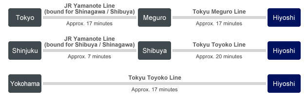 *Please note that the Tokyu Meguro Line ticket gate is approximately 15 minutes on foot from the Musashi-Kosugi Narita Express ticket gate.