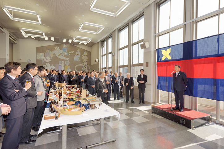 In a full hall, the ceremony began with children from Keio Yochisha Elementary School singing “Here Stands Yukichi Fukuzawa” and the Wagner Society singing “nihon no hokori (Japanese pride)”. Then there was a new year’s greeting from President Seike. Afterwards, Professor Keita Yamauchi from the Faculty of Nursing and Medical Care gave a commemorative lecture titled “Fukuzawa and Sports — the 125th Anniversary of the Athletic Association.”After the lecture, Takeshi Fukuzawa greeted the audience on behalf of the Fukuzawa family.