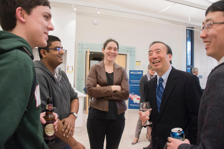 There was a lively question and answer session at President Seike’s lecture, and at the reception that followed, he talked and exchanged ideas with many participants. In addition, President Seike had meetings with faculty members and staff of WUSTL working in various fields, including those at the School of Medicine, during his visit. The trip was a good opportunity for Keio University to strengthen academic and educational ties with WUSTL.