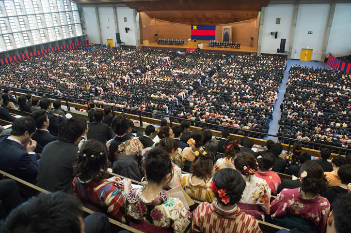 On Thursday, March 23, the 2017 Undergraduate Commencement Ceremony was held at the Hiyoshi Commemorative Hall, graduating 6,445 students from the 10 undergraduate faculties. Among the graduates were 237 Correspondence Course students.