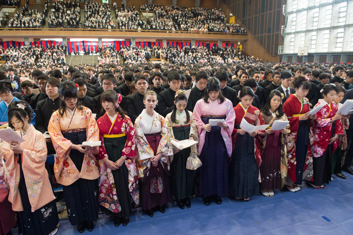 It was a mild spring day, and Hiyoshi Campus was filled with new graduates taking photos with their families and friends, and was bursting with a sense of celebration for accomplishments and the future beyond.