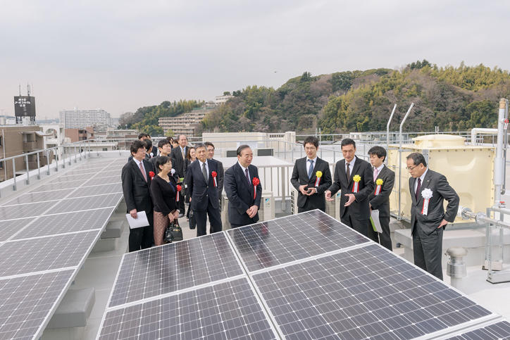On Wednesday, March 1, Keio University’s Hiyoshi International Dormitory was completed, and a completion ceremony was held together with a tour of the facility. Representatives of companies in charge of the design, construction, and maintenance, including the building owner Nishimatsu Construction Co., Ltd., which oversaw the construction, and Nishimatsu Jisho Co., Ltd., the company in charge of the maintenance and operation of the dormitory, as well as President Seike and other members from Keio University attended the ceremony.