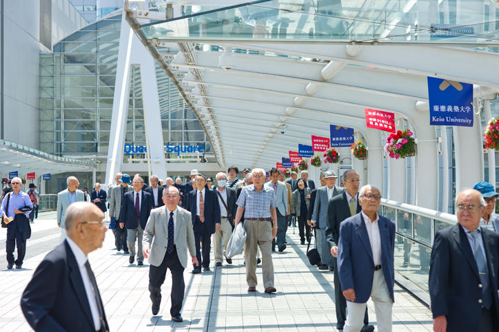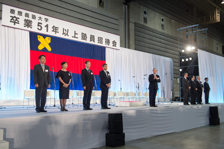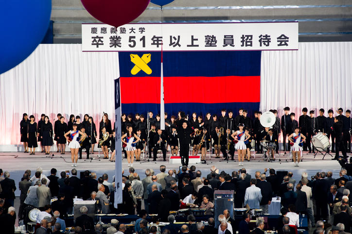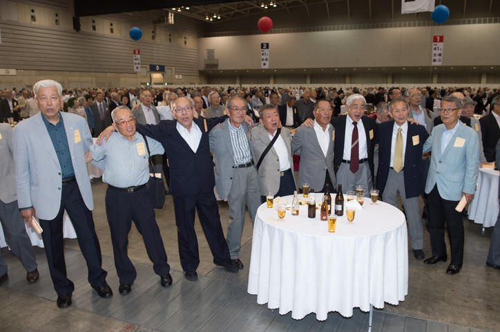 Now in its 64th year, the Post-50th Reunion is a tradition that started in 1958 when Keio extended an invitation to alumni celebrating their 25th and 50th graduation anniversaries to attend the Commencement Ceremony. Currently, 25th anniversary alumni are invited to the Commencement Ceremony and 50th anniversary alumni to the Entrance Ceremony. Since 1986, the Post-50th Reunion has been held every year for alumni celebrating any anniversary of graduation after their 50th. At this year’s event, which was again held in Yokohama, more than 4,200 graduates who graduated in or before 1965 (the oldest person who registered to attend the event was 101 years of age) attended.