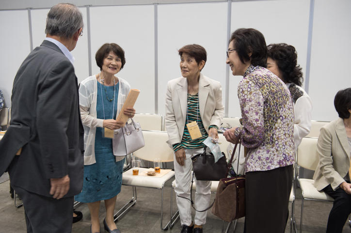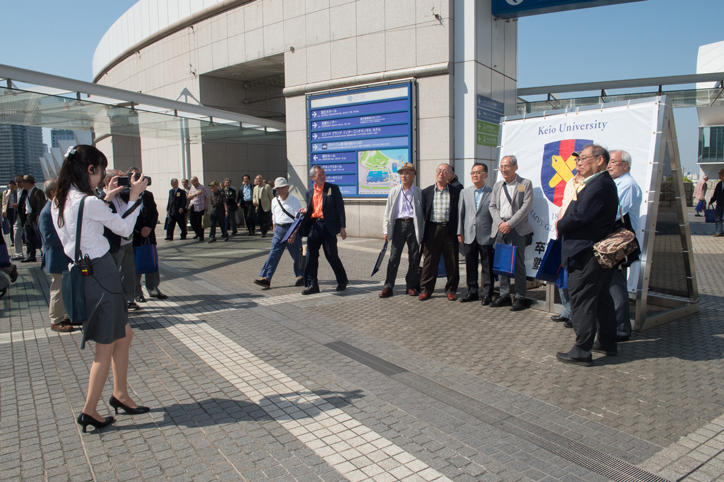 The alumni reunited with old friends on this warm and sunny day and enjoyed talking about their memories at Keio as well as recent events. They were also seen taking pictures with the view of the ocean from Yokohama in the background.