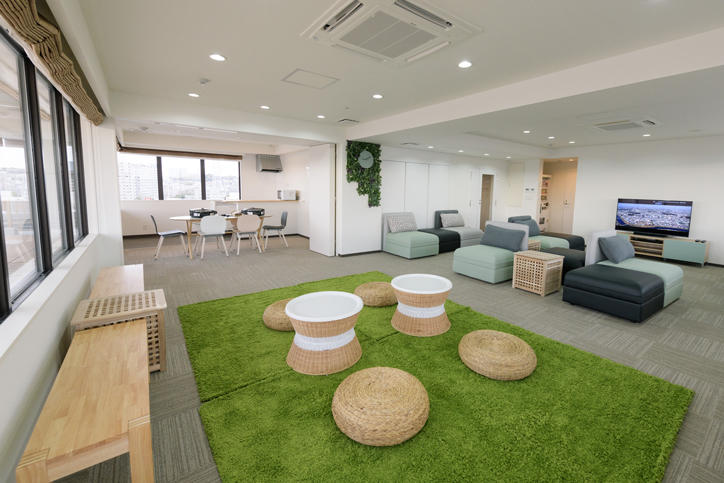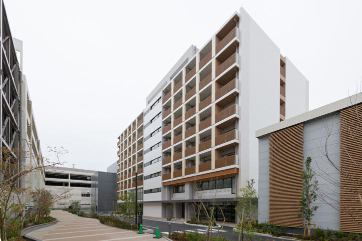 The Tsunashima SST International Dormitory is a nine-story mixed dormitory facility for international students which has been newly established within the Tsunashima Sustainable Smart Town (SST), a next-generation urban-type smart city developed on industrial real estate of electronics manufacturer Panasonic. It has 163 single-occupancy rooms, 82 of which are for the use of international students and 81 of which are for Japanese students. While meals are not provided, shared kitchen and dining areas are available. The 9th floor free space allows panoramic views of the entire city and can be utilized as a venue for communication with fellow dormitory residents. Electricity for the dormitory is supplied by an energy center in the town, and Tsunashima SST is also uniquely characterized by being partially run on photovoltaic (solar) energy. It is anticipated that the exchange studio in the first-floor town management center will go on to become a base for collaborative research between Keio and Panasonic as well as with the local area. This studio is intended to be a hub for SST experimental facilities which will facilitate cutting-edge demonstration experiments.