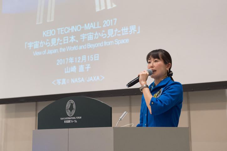 At the event space within the exhibition venue, astronaut Naoko Yamazaki delivered a special keynote speech titled “View of Japan, the World and Beyond from Space,” during which she interspersed accounts of her own time in space with her passionate thoughts and hopes for Japan’s future from the perspective of space. Following this, Genichi Tamatsuka, Hisataka Ikuta, and Kazutoshi Kobayashi, all distinguished industry leaders and alumni of Keio University, led a round-table session with the theme “The Role of Keio Faculty of Science and Technology: Industrial Expectations.” Here, they passionately discussed expectations with regard to future alumni of the Faculty of Science and Technology, including the need for leadership as well as the need for individuals with high technological capabilities who also have a keen awareness of management. A further round-table session with the title “Bringing the Keio FST concept to life through basic research—KiPAS in its first four years” was led by the Chair of the KiPAS steering committee and four principal investigators selected from among the tenured faculty members in core academic fields. Here, the importance of basic research and the role of universities were discussed and there were also lively exchanges with event attendees at a Q&A session.
