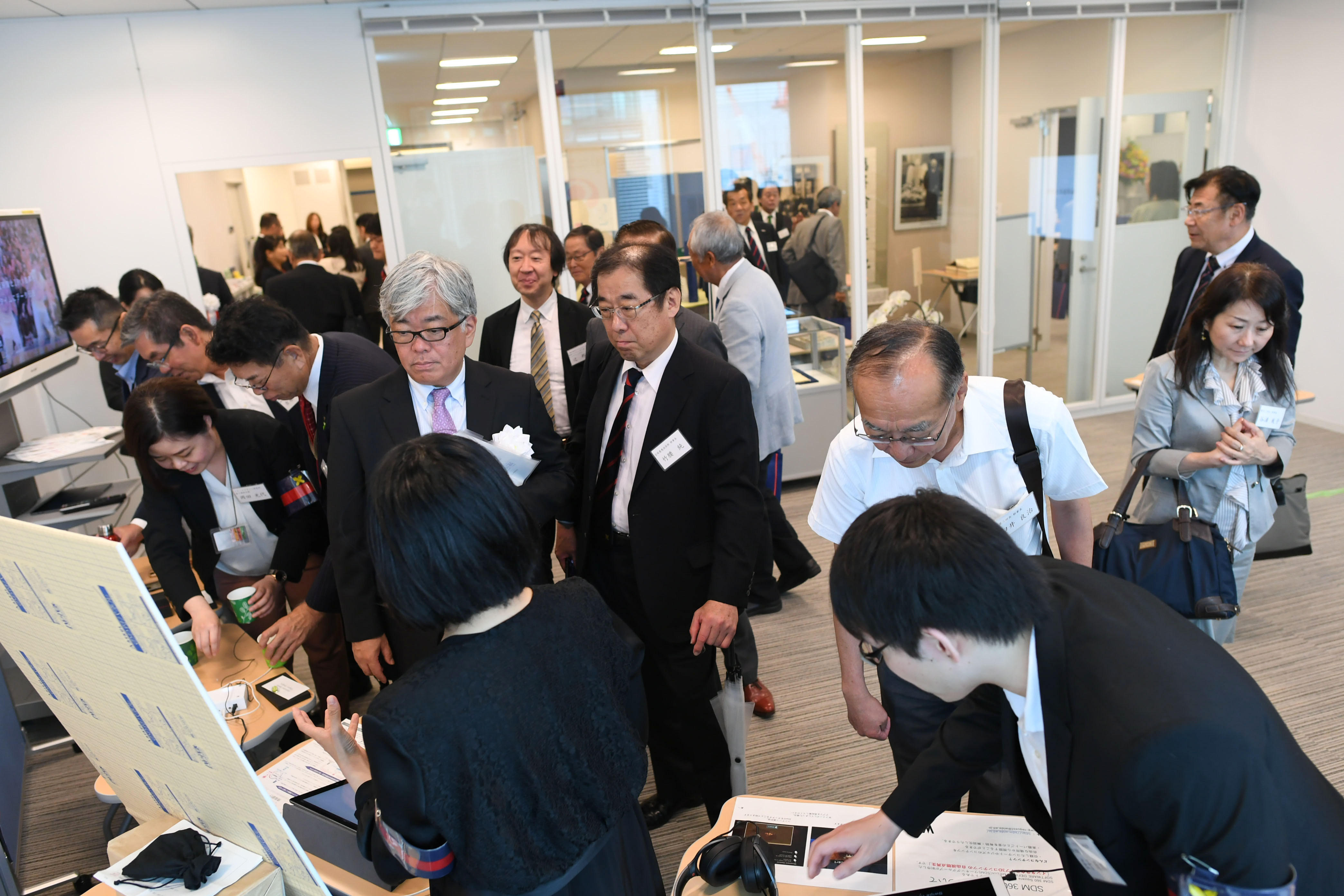 The event venue was enlivened by, among others, exhibits on Keio University and Yukichi Fukuzawa, as well as those introducing actual projects by the Graduate School of Media Design (KMD) which has a research space at KOCC, and explanations on the content of their research by students in attendance.