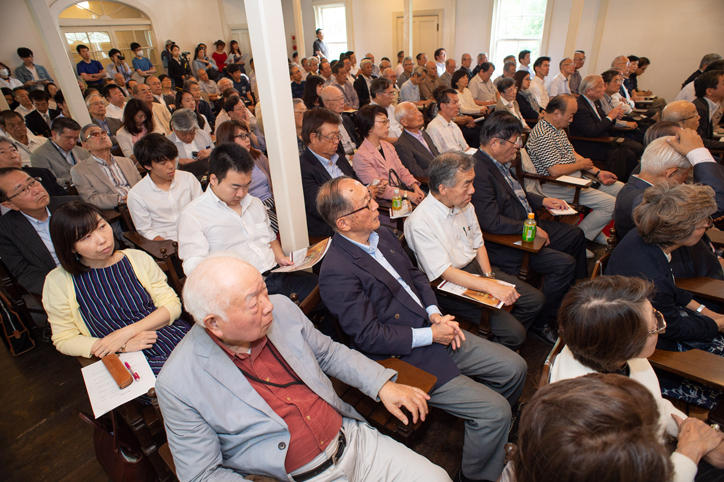 Keio faculty and staff members, students, and members of the general public filled the hall to capacity, with some having to stand to hear the lecture on a day blessed with fine weather.