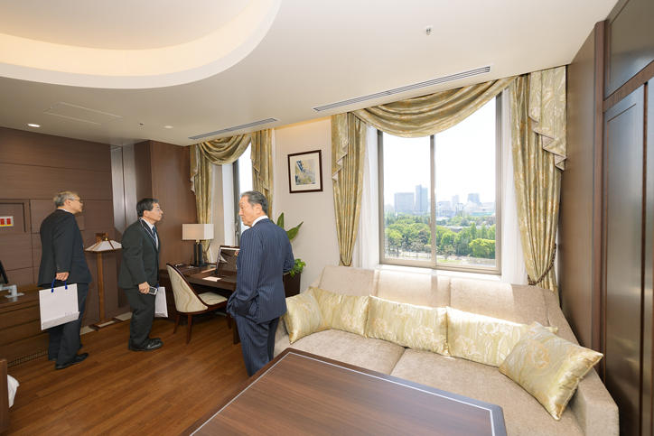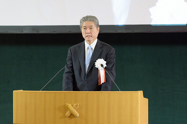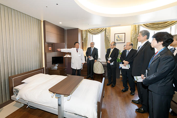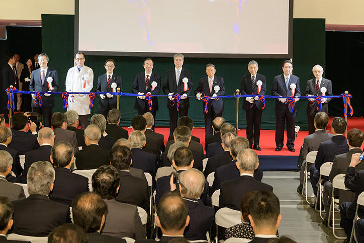 Over 330 people, including members of Keio University, representatives of the companies in charge of the design and construction of the building, and guests and other invited parties attended the ceremony. President Akira Haseyama, who was the first to make a speech, expressed hopes that the new building will develop into the nurturing ground for the future generations of Keio University medical services and medical care professionals. Next, Professor Masayuki Amagai, dean of the School of Medicine gave a speech, and chairperson of the Board of Councillors, Hiromichi Iwasa, gave a congratulatory address. Then, Vice-President Tsutomu Takeuchi gave an account of the New Hospital Project and reported on fund-raising activities. This was followed by a briefing on Building 1 from Keio University Hospital Director General Yuko Kitagawa, who also expressed his gratitude as occasioned by the successful completion of the building while stating his determination towards the further growth of Keio University Hospital.