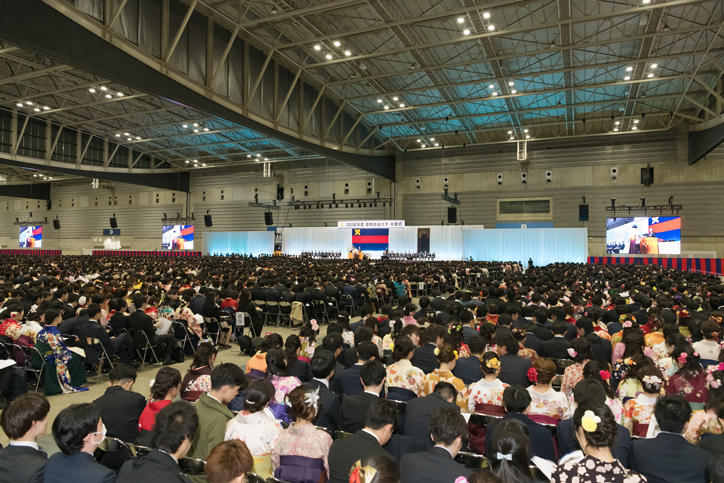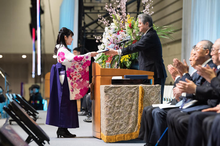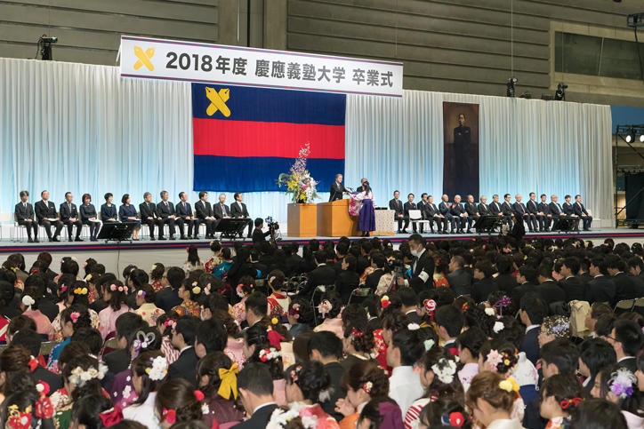 Similar to last year, the ceremony was again held at an external venue as work to rebuild the Hiyoshi Commemorative Hall continues. It was a large-scale event attended by about 12,000 people, including the graduates, their families, and invited Keio alumni.