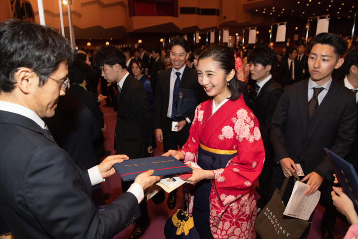On Monday, March 25, the 2019 Undergraduate Commencement Ceremony was held at the Exhibition Halls of Pacifico Yokohama, where 6,324 students from the 10 undergraduate faculties began a new chapter in their lives. Among the graduates were 235 Correspondence Course students.