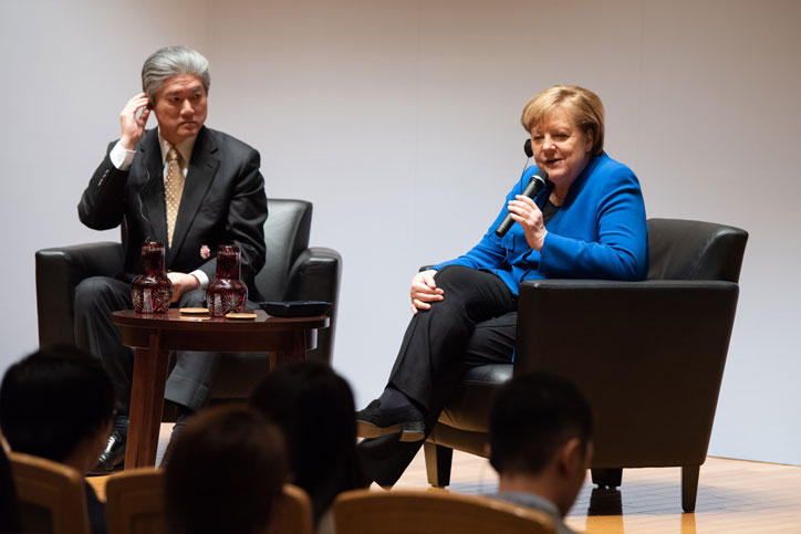 The German Chancellor offered the examples of systems for parental care leave, renewable energy sources, and inclusive education as areas in which Germany might be in a unique position to offer input to Japan. She noted the importance of coordinated responses to cross-border and global challenges among countries and the need to avoid complacency. She illustrated this by discussing technological developments including AI, and the need to ensure that these are deployed in such a way that they serve the best interests of people and society.