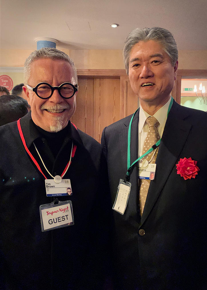 Later that evening, President Haseyama attended the "Japan Night" reception, an event sponsored by 29 Japanese companies and organizations, including Keio University. While there he met up with IDEO Inc. CEO Tim Brown, who received an honorary doctorate from Keio in October of last year.