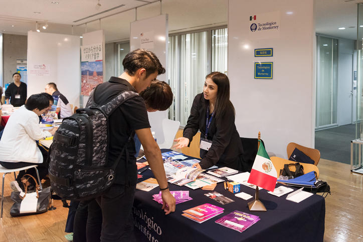 Over the four days, many students visited the Hiyoshi Communication Lounge where individual consultation booths were set up for external bodies including the embassies of countries represented at the fair and overseas study abroad organizations, as well as those of the International Center (International Exchange Services Group) and academic counselors from each faculty at Keio. At the venue for study abroad orientations, many people participated in the wide-ranging information sessions that were held regarding scholarships (Japan Student Services Organization [JASSO], Tobitate! Study Abroad Initiative), language proficiency tests (TOEFL, IELTS), the various study abroad programs available, and the study abroad system in place at Keio University. In addition, explanatory meetings were held by each embassy on the systems for study abroad and education in their respective countries. This year, representatives from Keio’s partner institutions in the USA, Mexico, France, and Australia attended to introduce their respective universities. The fair was a unique chance for Keio students thinking of studying abroad to obtain various information on the options available directly from the study abroad coordinators from each university. At the "Ask senior peers" corner, Keio students who have studied abroad for a year took questions from students thinking of studying abroad in the future. Additionally, international students who had come to Keio from its partner institutions were on hand at the "Ask international students" corner to introduce their home countries and universities. Keio and international students were able to interact through a mixture of Japanese and English. Many students from the university and its affiliated schools along with staff and faculty members attended the Study Abroad Fair, with visitor numbers over the four days totaling some 1,700 people.