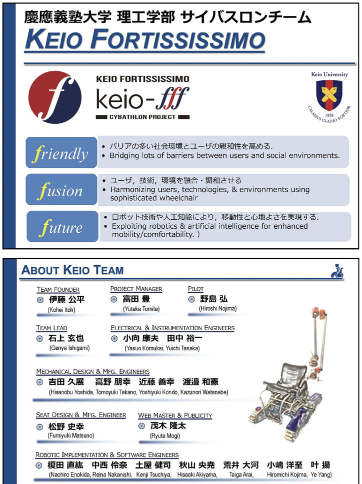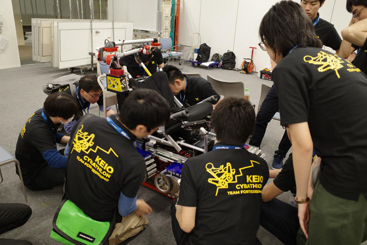 The CYBATHLON Wheelchair Series Japan 2019 was held on Sunday, May 5 at Culttz Kawasaki, and saw the participation of eight teams including those from Russia, Switzerland, and Hong Kong. The "FORTISSISSIMO" CYBATHLON team from the Keio University Faculty of Science and Technology, who were participating in the CYBATHLON for the first time, achieved a commendable showing in third place behind HSR Enhanced (Switzerland) in first place and Caterwil (Russia) in second place, after coming through the two morning and afternoon qualifiers to advance to the third-place play-off.