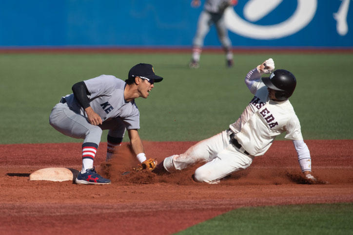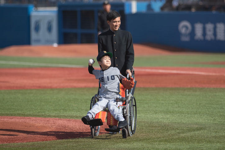 In the first game against Waseda University played on November 2 (Sat.), the Baseball Club won 7-1 to come first in the tournament with 9 consecutive wins. A win on the 3rd (Sun.) would have meant winning all 10 games of the tournament for the first time in 91 years, but Waseda scored 3 runs in the first inning, making it a difficult game. Keio's attempt to close the gap throughout the game was in vain, ultimately losing 4-6. An exciting game was played on the 4th (Mon.) in which both teams contended over a single point. Waseda scored a run in the final inning to win 3-4, ending Keio's run to end the tournament with a win over each of the opposition universities for a complete set of victories in the tournament. However, the captain of the Keio University Baseball Club, Yuya Gunji (Faculty of Environment and Information Studies; catcher) won the triple crown. The last Keio player to win the triple crown was Yoshinobu Takahashi at the 1996 spring tournament. Additionally, 5 members of the Baseball Club were selected in the best nine, a glorious achievement for the club.