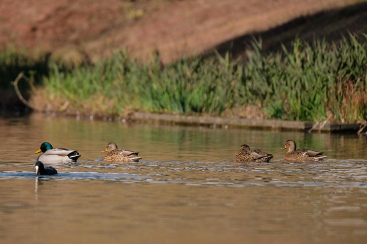 Ducks swimming in Gulliver Pond (Kamoike) / Shonan Fujisawa Campus