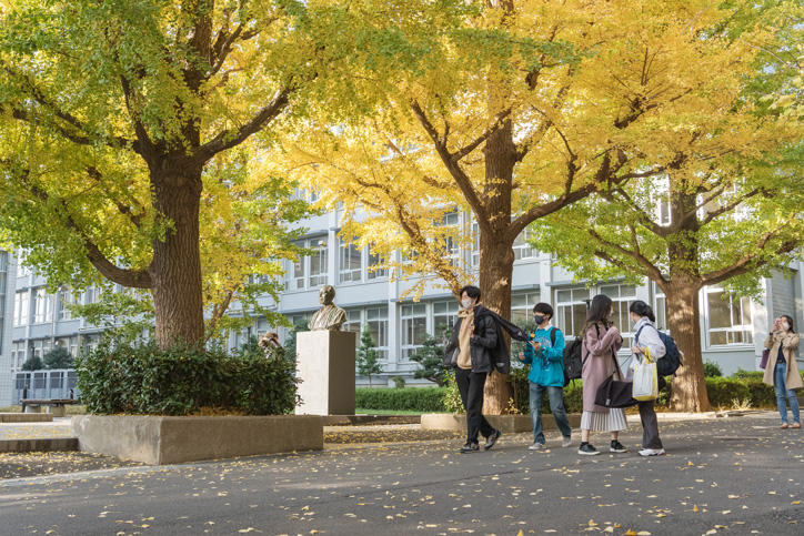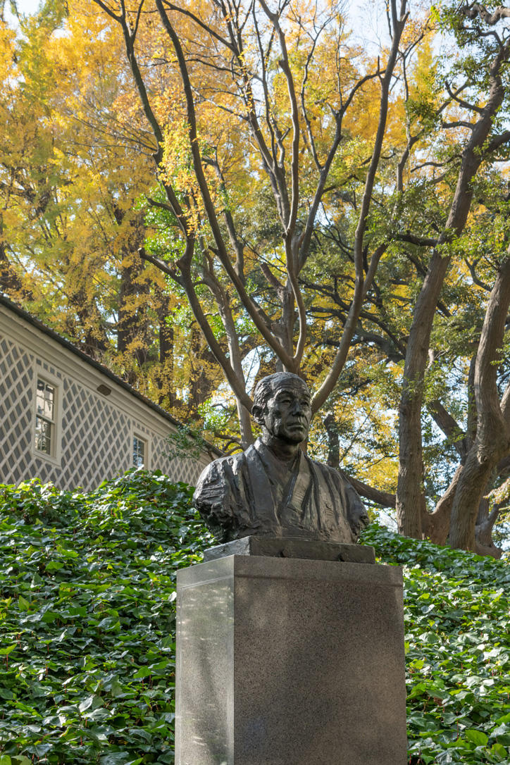 In front of the bust of Yukichi Fukuzawa / Hiyoshi Campus