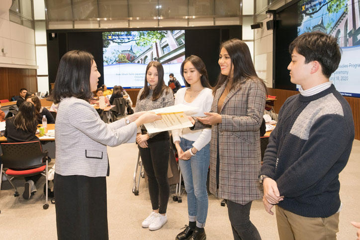 The Keio Short-Term Japanese Studies Program (KJSP) 2020 wrapped up on February 18 with the participants from Keio and other universities around the world giving their final presentations, receiving their certificates of participation, and enjoying a farewell reception with the lecturers who taught them in the program over the last 2 weeks.