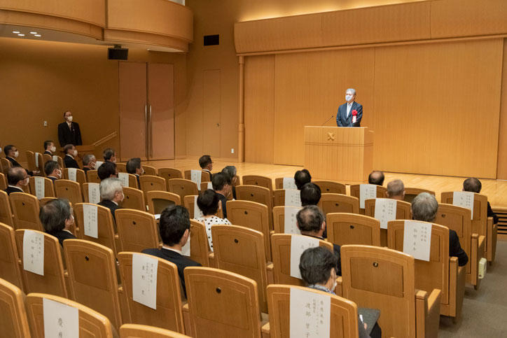 The ceremony to present letters of appreciation was attended both by members of the Keio community and representatives of Mitsubishi Jisho Sekkei Inc., who were responsible for the overall design and supervision of the project; Tokyu Construction Co., Ltd., the construction contractor; Nippon Densetsu Kogyo Co., Ltd.; Sanken Setsubi Kogyo Co., Ltd.; and others. At the ceremony, Keio University President Akira Haseyama presented letters of appreciation to the persons in charge of the design, supervision, and construction for the project.