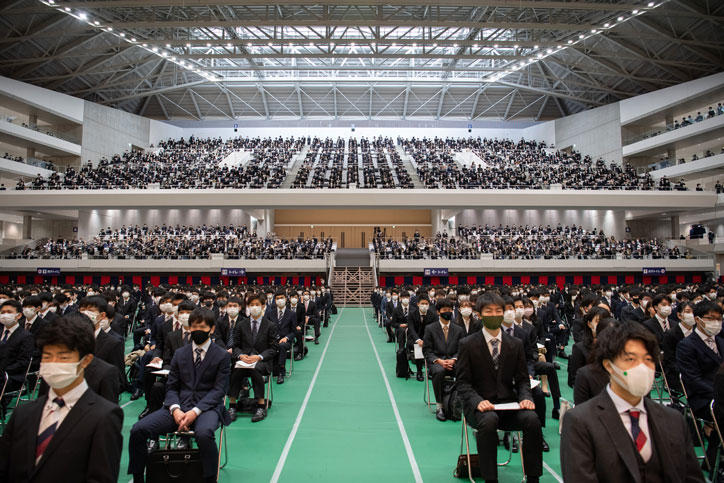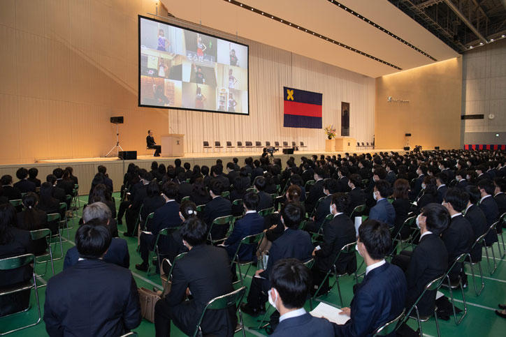 In order to give maximum consideration to preventing the spread of COVID-19 (coronavirus disease), the ceremony was divided into 2 sessions, with one held in the morning and the other in the afternoon, while participation was limited to the new students and certain related parties only. Videos of the ceremony were streamed online for all others interested in following the proceedings.