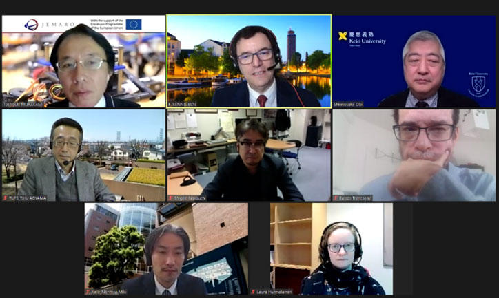 In Part Two (17:00–18:30), the universities selected under the Japan-EU Inter-University Exchange Program for HIPS, IMLEX, and JEMARO, which are joint master's degree programs, shared information on their initiatives as well as challenges during the coronavirus pandemic among the principal liaisons and with other universities outside the EU-IUEP programs... Part 2 was held in English, with Professor Toru Aoyama (Tokyo University of Foreign Studies) and Professor Balázs Trencsény (Central European University) from HIPS; Professor Shigeki Nakauchi (Toyohashi University of Technology) and Laura Hurmalainen, Msc (University of Eastern Finland, IMLEX Program Coordinator) from IMLEX; and Professor Toshiyuki Murakami (Keio University Graduate School of Science and Technology), Professor Norihisa Miki (Keio University Graduate School of Science and Technology), and Professor Fouad Bennis (Ecole Centrale de Nantes) from JEMARO, giving presentations.