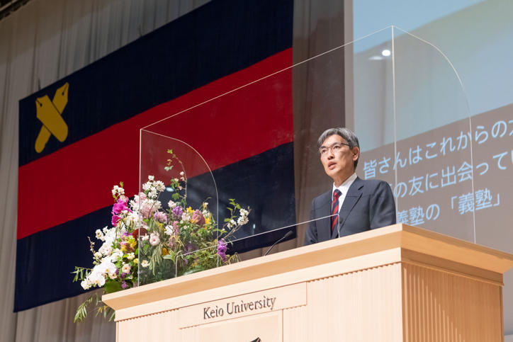 At the ceremonies, Vice-President Yoshimitsu Matsuura gave the Incoming Class Report, which was followed by a Welcome Address by President Kohei Itoh. In his address, President Itoh presented the "Mission of Keio University," first conveyed by the founder of Keio University Yukichi Fukuzawa, expressing his hope that each member of the incoming class would become leaders who pursue their ideals. President Itoh's address was followed by the Congratulatory Address, delivered by Professor Keigo Komamura of the Faculty of Law in the morning ceremony, and Professor Yoko Hasebe from the Faculty of Environment and Information Studies in the afternoon ceremony. This was followed by the Matriculation Address, which was delivered by incoming students Keisuke Hara of the Faculty of Law in the morning ceremony, and Tatsuhiro Chiba from the School of Medicine in the afternoon ceremony.