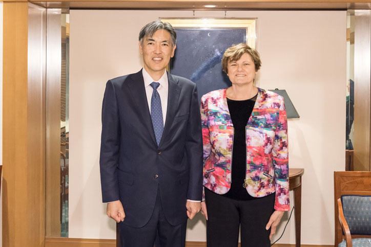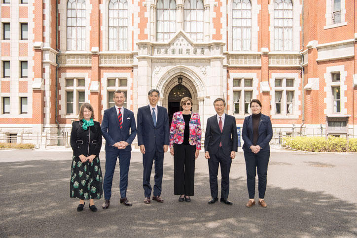 On Saturday, April 16, Dr. Katalin Karikó, a researcher at BioNTech who was instrumental to the development of the mRNA vaccines that are now used throughout the world to stop the spread of COVID-19, and H.E. Dr. Norbert Palanovics, Ambassador of Hungary, visited Mita campus to meet with President Itoh and Vice-President Amagai.
