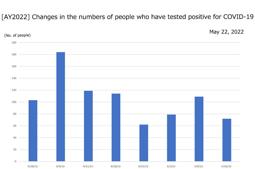 Approximately every two weeks, Keio University releases a report of the number of people affiliated with the university who have tested positive for COVID-19 in order to ensure that faculty, staff, and students are thoroughly aware and alerted to current infection trends.