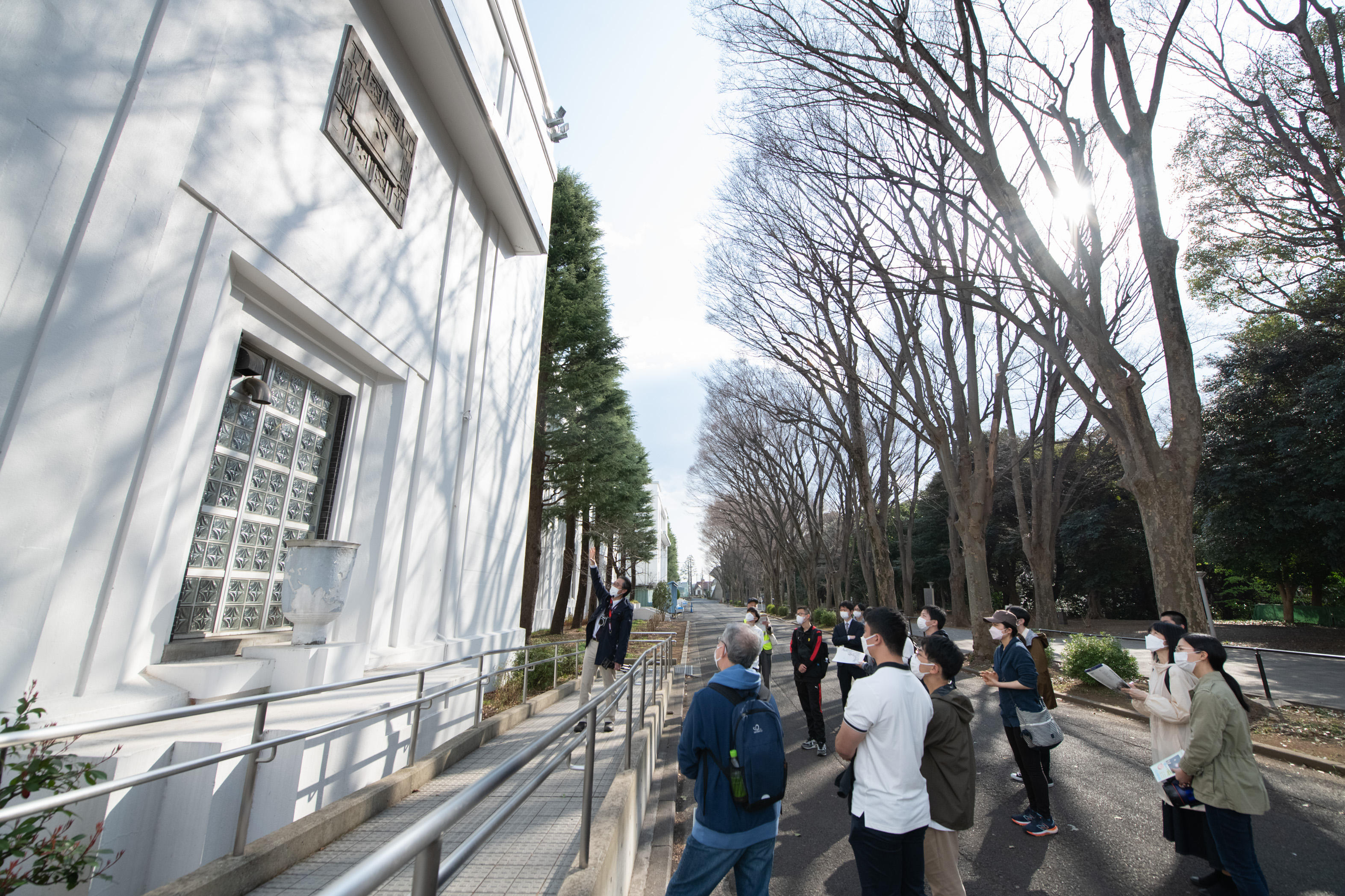 The tour on Shinanomachi Campus took place on Wednesday, March 8. It started from the Kitasato Memorial Medical Library, named after the School of Medicine's first dean, Shibasaburo Kitasato, then brought students to surrounding locations including the Building for Preventive Medicine and Public Health, a small Shinto shrine, and the site of the former Institute of Diet and Nutrition. Kitasato never studied directly under Fukuzawa, but he relied on Fukuzawa's assistance and advice while pursuing his own research. While the School of Medicine was not established at Keio until after Fukuzawa's death, Kitasato was fully committed to repaying his kindness by working to establish the School of Medicine. During the tours, students enjoyed Associate Professor Tokura's often humorous explanations as they learned about how Fukuzawa encouraged and fed Kitasato's belief in the development of medical science, and how the Shinanomachi campus continues to carry on and embody his ideologies.