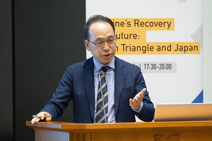 Vice-President Motohiro Tsuchiya served as the moderator for this workshop. Following an opening address by President Itoh, H.E. Dr. Sergiy Korsunsky, the Ambassador Extraordinary and Plenipotentiary of Ukraine to Japan, took to the stage and delivered his keynote speech where he spoke passionately about the reconstruction and recovery of Ukraine. Ambassador Korsunsky explained the historical background behind the cooperative alliance of the Lublin Triangle. He also brought attention to issues that Ukraine is facing and stressed the need for the international community to work together in supporting Ukraine.
