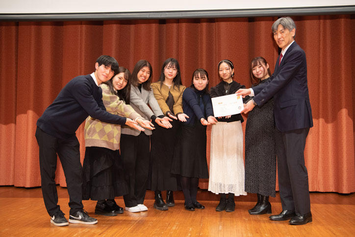 Student delegates delivered their proposals to President Kohei Itoh in front of a group of university officials. Among them were the 2022 Student Conference supervisors, Professor Norichika Kanie and Project Professor Hiroko Kuniya who both work with the Graduate School of Media and Governance, and other faculty and staff members.