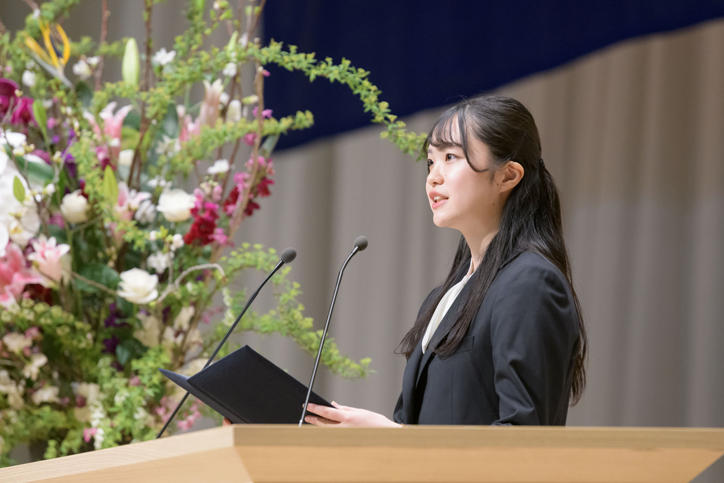 The ceremony began with Vice-President Yoshimitsu Matsuura delivering the Incoming Class Report, followed by the Welcome Address by President Kohei Itoh, in which he expressed his hopes and expectations for the new students, citing the ever-increasing need and value of scholars. He explained that in this age of AI, academics is of paramount importance due to the need for people who can excel in science and technology.