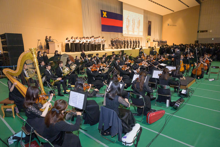 The ceremony concluded with a rendition of the alma mater "The Juku-ka" by the Wagner Society Orchestra, celebrating the new beginnings of the students together with their families in attendance at the venue.