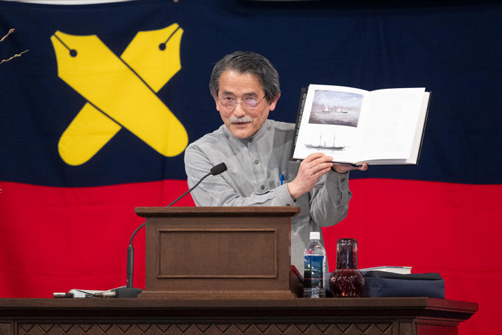 In the packed Mita Public Speaking Hall, the enraptured audience lost track of time as they listened to Hayashi's passionate recounting of the real-life circumstances of the Satsuma students, making the lecture a fitting tribute to the Mita Public Speaking Event's 150th anniversary.