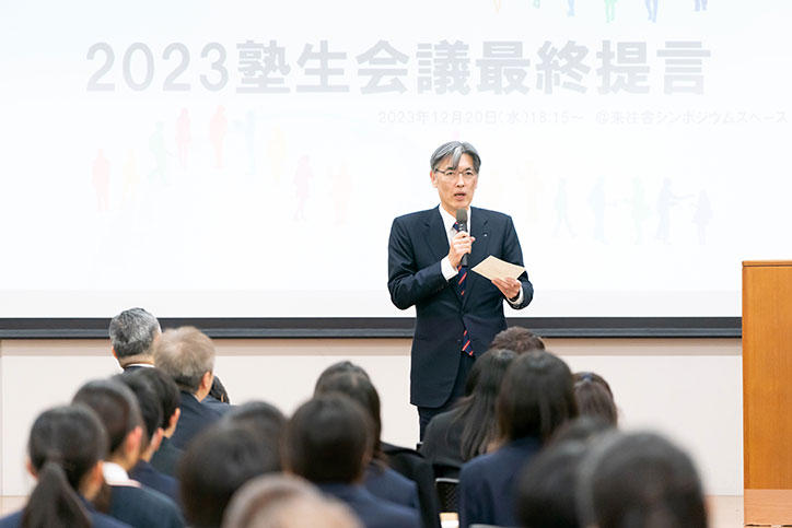 On Wednesday, December 20, an event was held on Hiyoshi Campus for student representatives to deliver their final proposals to the president of Keio University for the 2023 Keio Student Conference.