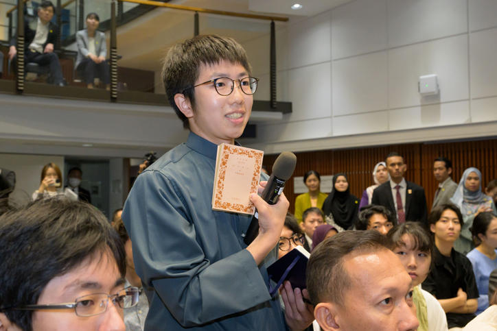 During the post-speech Q&A session, students in the audience asked questions pertaining to the coexistence of people of different faiths and ethnicities, for instance, between Malaysian and Japanese people. The audience listened intently to Prime Minister Anwar's words throughout the commemorative lecture.