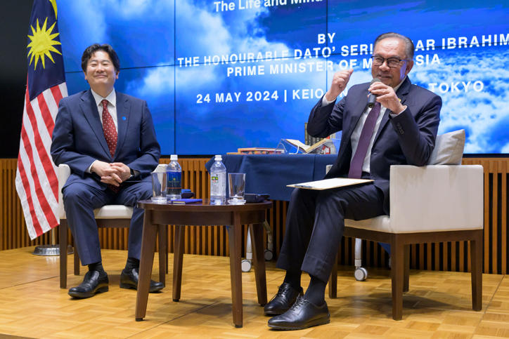 On May 24, a commemorative lecture titled, "A Feast of Civilisations: The Life and Mind of Toshihiko Izutsu," by Malaysian Prime Minister Anwar Ibrahim was held at Keio University's Mita Campus. A total of about 130 people attended the lecture, including officials from the Malaysian Prime Minister's Office and the Embassy of Malaysia in Japan. Participants from Keio University included Vice-President Tsuchiya, students, faculty, and staff members.