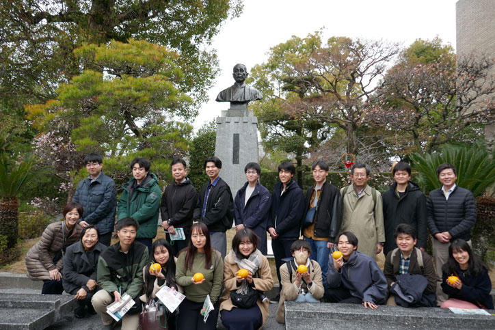 From Wednesday, March 6, to Friday, March 8, a three-day and two-night tour, "Special Tour of Places in the Life of Yukichi Fukuzawa-Nakatsu, Oguni, and Kitsuki," was organized by the Student Affairs Center. The tour in Nakatsu was held for the first time in six years, with Vice-President Keita Yamauchi and Associate Professor Takeyuki Tokura from the Fukuzawa Memorial Institute for Modern Japanese Studies invited as lecturers. The tour centered on Nakatsu City, Oita Prefecture, where Yukichi Fukuzawa spent his childhood, and took participants to Oguni Town in Kumamoto Prefecture and Kitsuki City in Oita Prefecture. Fourteen students from various campuses, faculties, and graduate schools, ranging from undergraduate students to doctoral students, participated in the tour. Vice-President Akiyo Okuda joined the tour from Wednesday, March 6, to Thursday, March 7, and mingled with Keio students.
