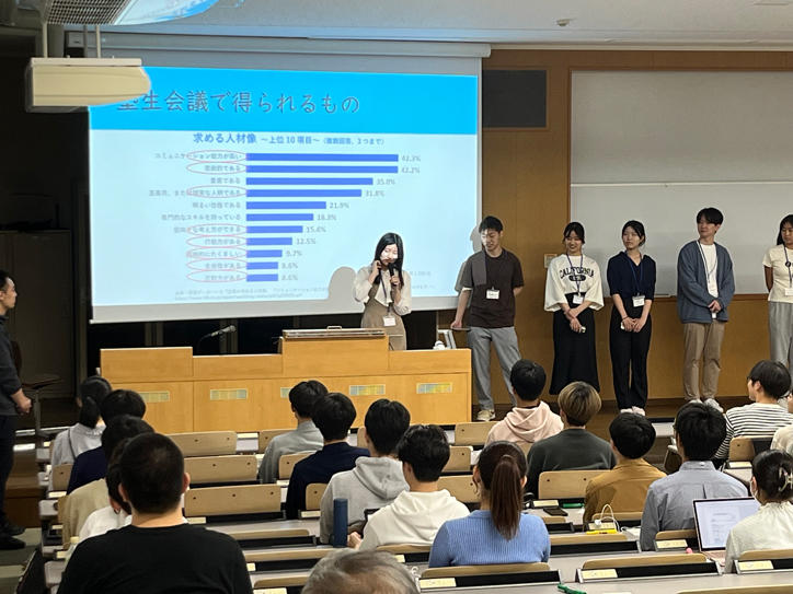 The first session, an introductory one, was held on Wednesday, May 15, and was attended by about 70 participants. The session kicked off with an opening address by President Kohei Itoh, followed by an overview of the Student Conference, now in its third year, by Vice-President Akiyo Okuda. Professor Hiromichi Kobayashi from the Faculty of Law then gave a talk on how the Student Conference will proceed this year. Students who participated in the previous year's Student Conference also shared their experiences and ongoing projects. Yukiko Yoshii, manager of the Hiyoshi Media Center, delivered a lecture on the necessary information retrieval processes for the creation of proposals and recommendations. This was followed by a speech by Professor Norichika Kanie from the Graduate School of Media and Governance, as well as an address by Guest Professor Hiroko Kuniya from the same graduate school.