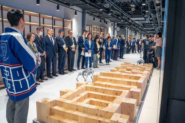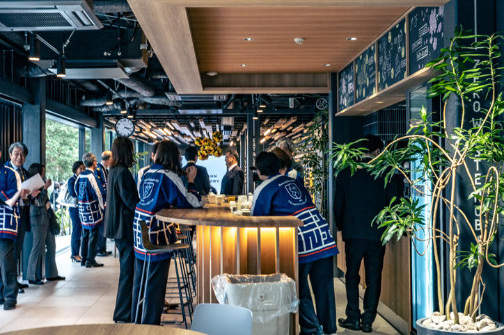 For the second half of the event, the venue shifted to the YIL building where a ribbon-cutting ceremony was held to signify the official opening of the facility. Participants were then divided into four groups for a tour of the facility. On the first floor, participants enjoyed a demonstration of the coffee machine space and other amenities, while on the second floor they viewed research equipment that had been installed according to the theme of each respective area where staff members explained in detail how they were designed, deepening everyone's appreciation for the facility.