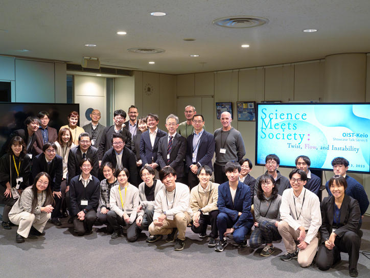 On Saturday, December 13, the eighth edition of the OIST-Keio Showcase Talk Series, a joint symposium organized by Keio University and the Okinawa Institute of Science and Technology (OIST), was held. The event took place on Yagami Campus at the Forum on the 7th floor of Building 14 and at the Yagami Innovation Laboratory (YIL). The theme of this event was "Science meets Society: Twist, Flow, and Instability." Researchers from both universities came together to share cutting-edge insights in fluid dynamics and mechanical sciences from diverse perspectives and to engage in discussions aimed at fostering new collaborations.