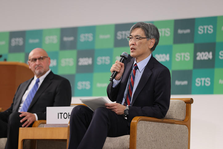 The University Presidents' Meeting provided a platform to discuss the theme, "Information Overload? The Impact of Real-Time Technologies on Higher Education." Keio University President Kohei Itoh (Japan) and the University of California President Michael Drake (United States) were co-chairs of the event as well as presenters. After they and two other speakers offered their thoughts, attendees broke into groups to discuss how they, as university presidents, might best handle and approach the accelerating use of AI and other new technologies at their schools. President Itoh also took to the stage as chair of the Koji Omi Memorial Plenary, the main session for the STS forum that honors its founder, Kōji Omi. President Itoh's speech was titled, Lights and Shadows of AI.