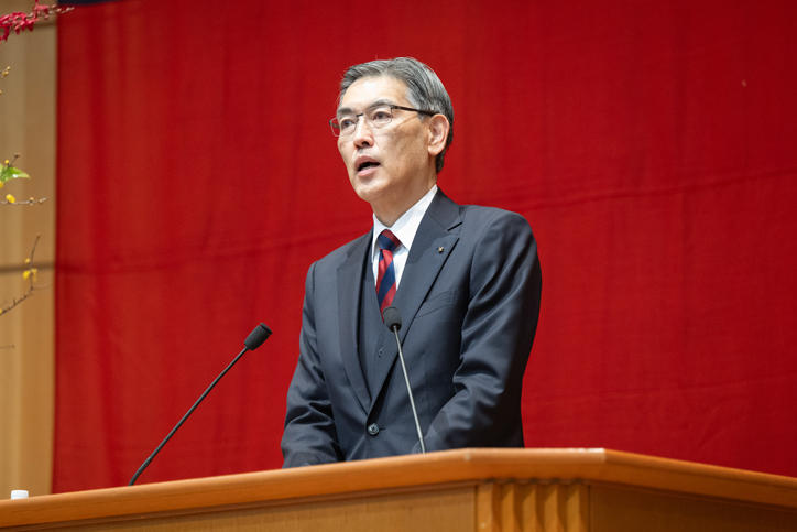 The ceremony began with choral performances of Here Stands Yukichi Fukuzawa, sung by students from the Keio Yochisha Elementary School and the Keio Yokohama Elementary School, and Nihon no Hokori (Pride of Japan), sung by the Wagner Society Male Chorus. Following these performances, President Kohei Itoh gave his new year's greeting. In his greeting, President Itoh touched upon how Yukichi Fukuzawa continuously expressed his convictions about what he believed was most appropriate for his time, prepared to face criticism, to guide Japanese society in the right direction during turbulent times. Using this example, he demonstrated Keio University's strong determination to work together to transform Japanese higher education.