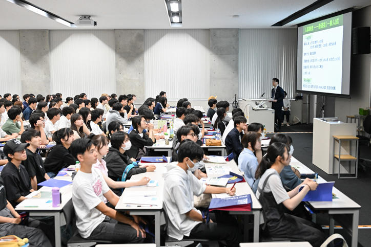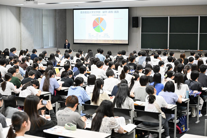 This event featured faculty-specific information and mock lectures, and was held on Hiyoshi Campus, which is primarily attended by first- and second-year students. Faculty members gave clear explanations of the defining features of their undergraduate programs, course content, and latest research, while attendees listened with great interest.