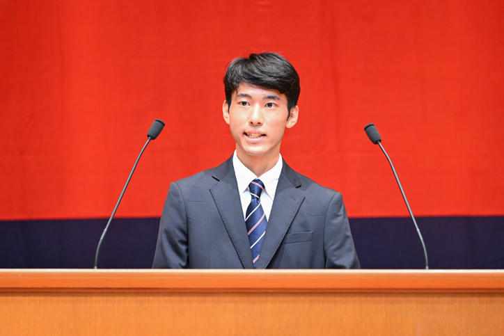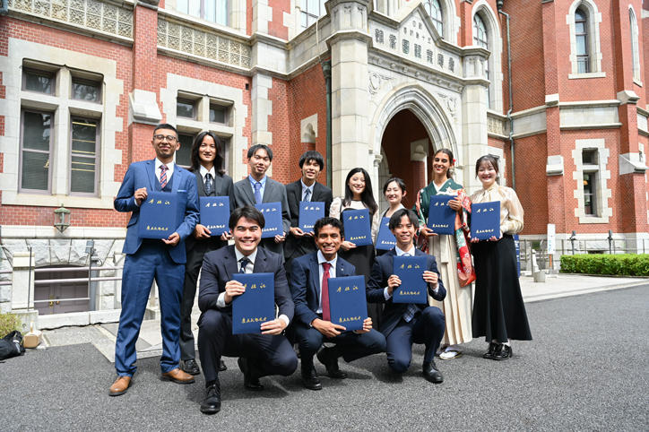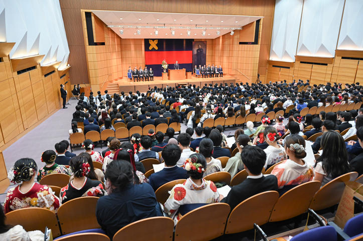 The ceremony began with Vice-President Yoshimitsu Matsuura's graduating class report, followed by President Kohei Itoh conferring degrees on representative students from each undergraduate faculty and graduate school. In addition, outstanding undergraduate students were recognized with commendations for academic excellence in accordance with the university's guidelines.