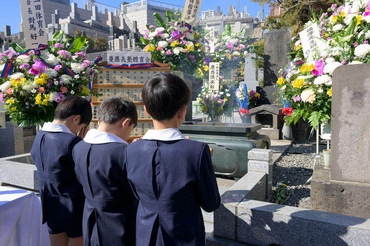 On Tuesday, February 3, students from the university and its affiliated schools, alumni, faculty, staff, and other members of the extended Keio community gathered at the grave of Yukichi Fukuzawa at Azabu-san Zenpuku-ji temple in the Moto-Azabu neighborhood of Minato Ward for a Buddhist memorial service to pay their respects on the 126th anniversary of the Keio founder’s passing.