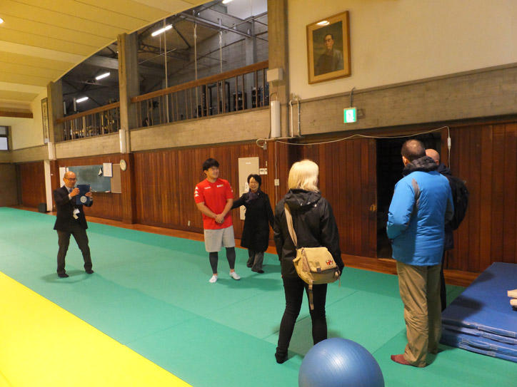On November 27, doctors and physical therapists from Team GB (the British Olympic Team) took a tour of the facilities on Keio’s Hiyoshi Campus. As Hiyoshi Campus will be used by Team GB athletes for the Tokyo 2020 pre-Games preparation camp, the medical team conducted a thorough check of the training facilities and dining spaces that may be used by the athletes, as well as the AEDs on campus.