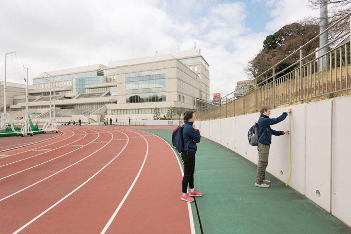 Due to the worldwide spread of COVID-19 (coronavirus disease), the visit was on a much smaller scale than originally planned. Nevertheless, the group that visited Hiyoshi Campus on this occasion comprised members of various teams including the swimming, taekwondo, and modern pentathlon teams, and they visited and carefully examined each facility they expect to use during the pre-Games preparation camp.